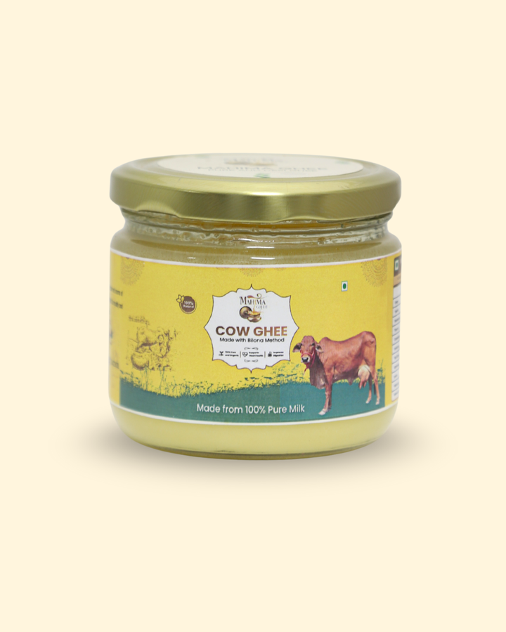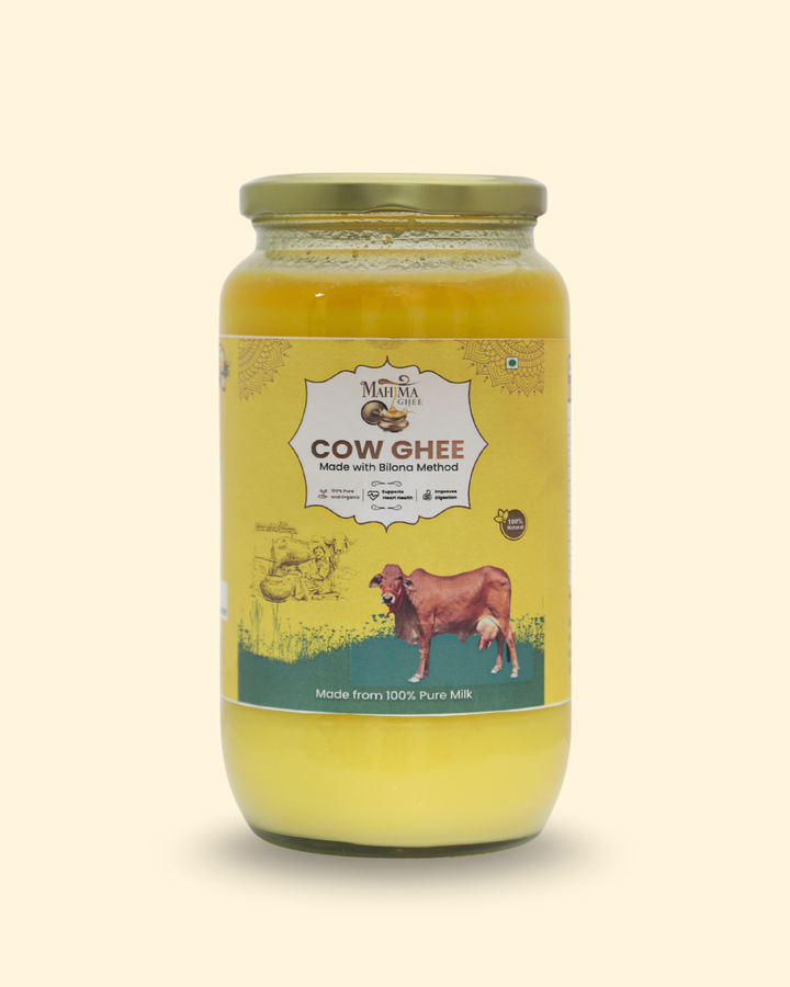Mahima Ghee is made using the traditional Bilona method from 100% pure A2 desi cow milk, ensuring better taste, nutrition, and authenticity.